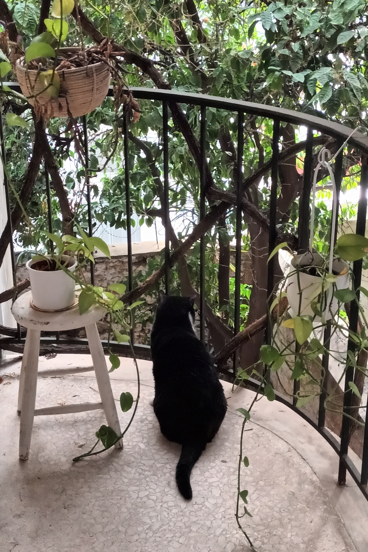 Ενίοτε, όμως, λυγίζουν και τα σίδερα (sic). Όταν η υπερκινητικότητά του δεν μου έδινε στα νεύρα, με έκανε τουλάχιστον να γελάω πολύ. “Δεν είναι γατί, είναι καρτούν”, σκεφτόμουν όταν τον έβλεπα να πηδάει όσο πιο ψηλά μπορούσε, βγάζοντας κραυγούλες, για να φτάσει τα πουλιά από την έξω πλευρά του παραθύρου, ή όταν μπήκε οικειοθελώς για πρώτη φορά στη γεμάτη μπανιέρα (και του άρεσε).