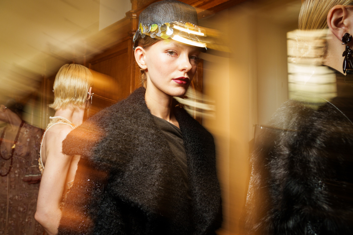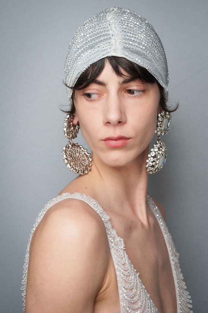 Θέλεις να δημιουργήσεις ένα beauty look κατάλληλο για να απολαύσεις το ποτό σου σε ένα κρυμμένο μπαρ; Πες «ναι» σε αξεσουάρ μαλλιών όπως το παρακάτω. Κάτι ανάμεσα σε μικρό καπέλο και μπερέ, τα αξεσουάρ μαλλιών στη συλλογή του Giorgio Armani κεντημένα με παγιέτες ήταν απλά εντυπωσιακά.