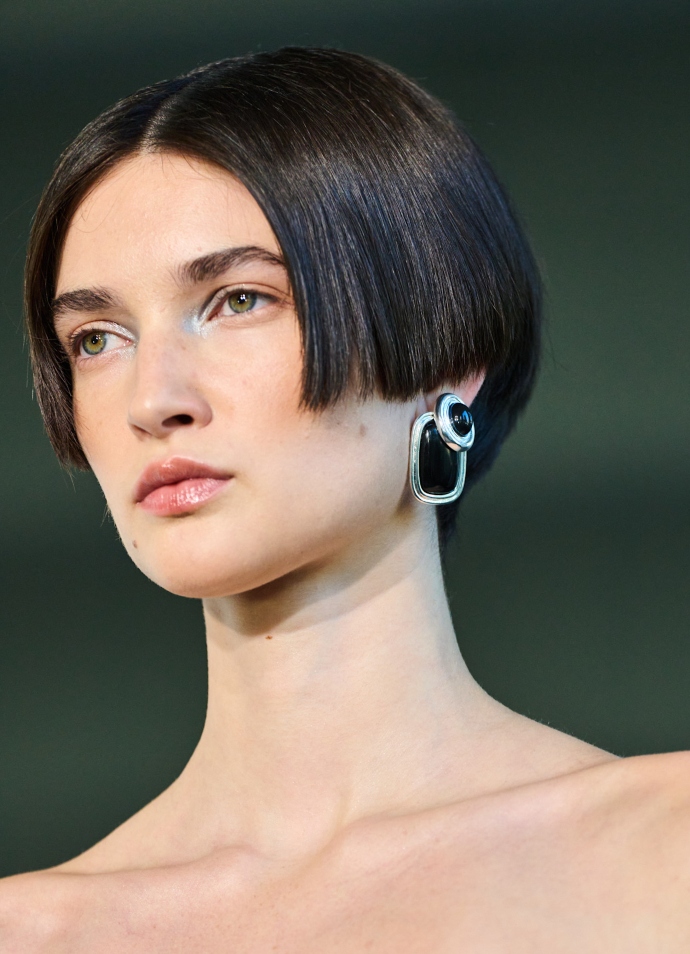 Ίσιο και χωρίς layers με το μήκος του να αγγίζει το πιγούνι, το κλασικό κοντό καρέ που πρότεινε η Spring 2026 συλλογή του οίκου Zomer, παραμένει σταθερή επιλογή.