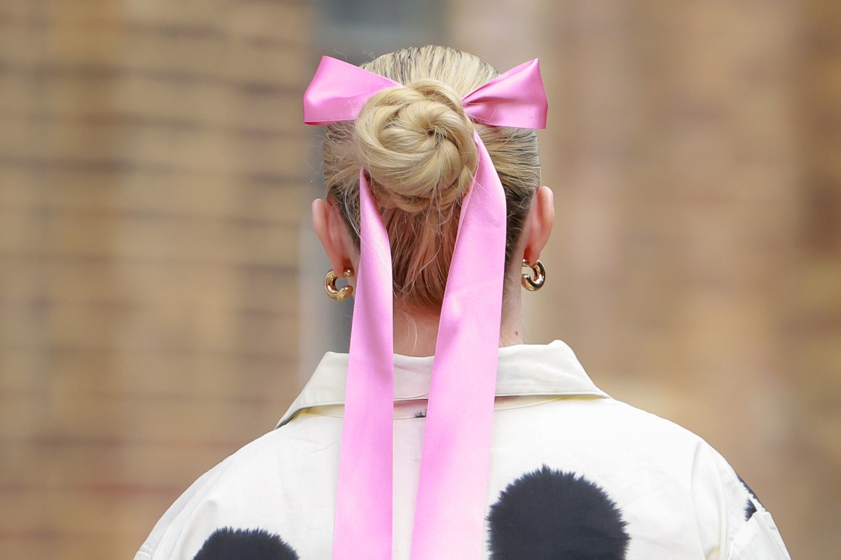 Μία απλή κορδέλα μαλλιών σε ένα παιχνιδιάρικο ροζ χρώμα μπορεί να «μεταμορφωθεί» σε έναν εντυπωσιακό φιόγκο που θα στολίσει κάθε απλό χτένισμα με τα μαλλιά πιασμένα σε έναν κότσο.
