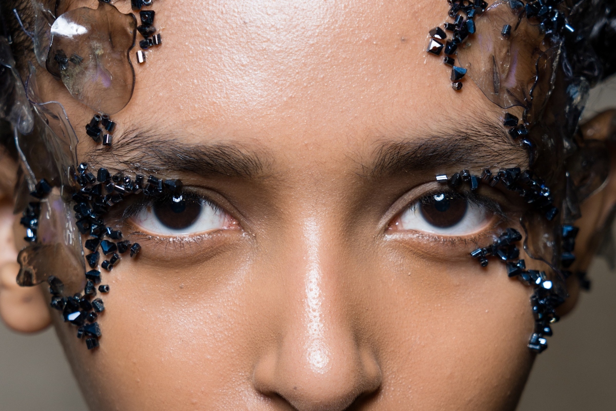 Οι μεταλλικές λεπτομέρειες στο πρόσωπο που τοποθετήθηκαν στα πρόσωπα των μοντέλων σε συνδυασμό με τα ear cuffs και την περλέ σκιά στο καπάκι του ματιού έκαναν αυτά τα μακιγιάζ να έχουν βγει κατευθείαν από το σύμπαν του Lord of The Rings.