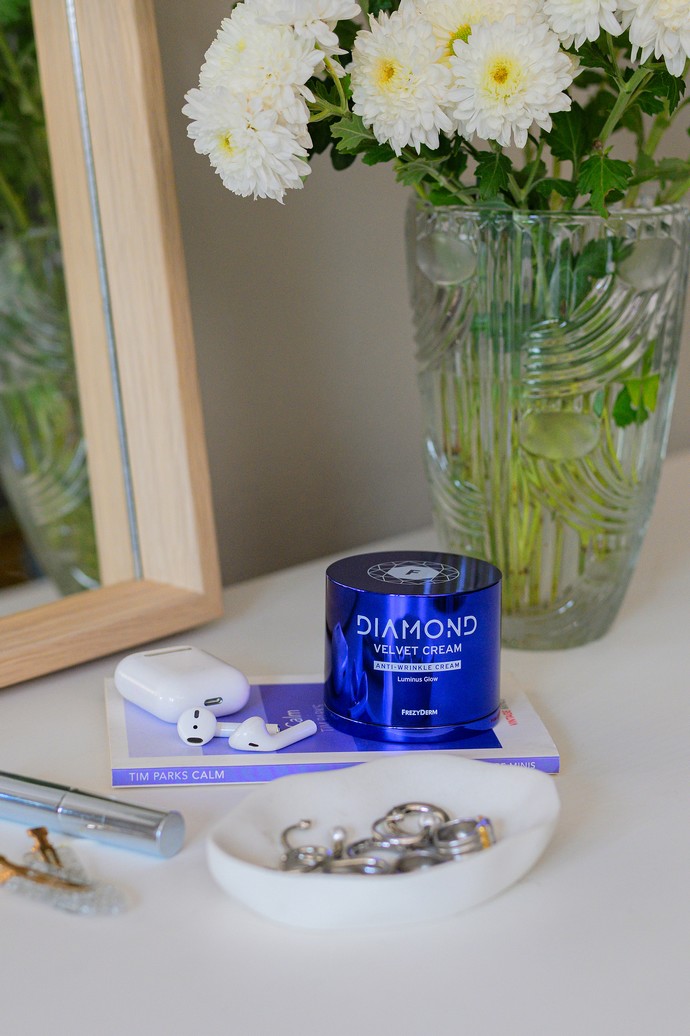 Με αυτή τη διάθεση δοκιμάσαμε με τη συνάδελφό μου τη Βιβή Αγγελάκη δύο νέα πολυτελή προϊόντα της σειράς Diamond Velvet της Frezyderm. Θέλαμε να τσεκάρουμε πώς θα δράσουν στην επιδερμίδα μας, πώς μπορούμε να τα εντάξουμε στη ρουτίνα μας και, το βασικό, πώς θα μας κάνουν να νιώσουμε – γιατί το skincare δεν κρίνεται μόνο από το αποτέλεσμα, αλλά και από το πώς μας συνδέει με τον εαυτό μας.