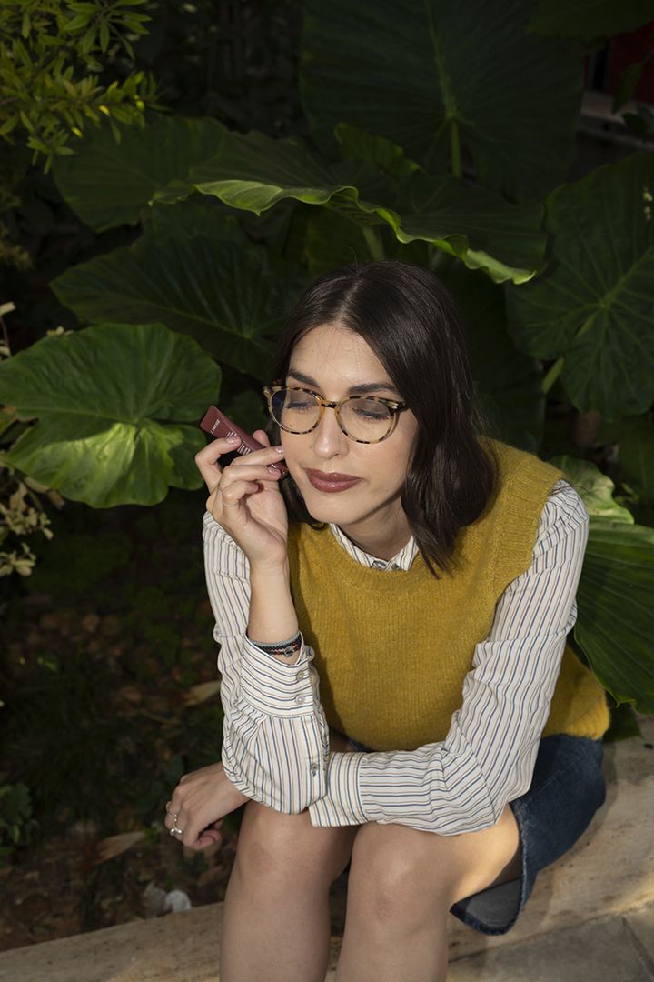 Σ’ αυτό το look συνδυάζω την άνεση της τζιν βερμούδας, τη διαχρονική κομψότητα του πουκαμίσου και τη preppy αισθητική που έχει ένα αμάνικο πουλοβεράκι Parfois με τo Glaze Craze Tinted Lip Serum στην απόχρωση Chocolate Frosting της Laneige.