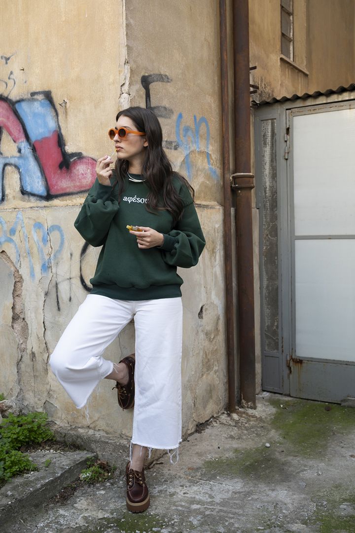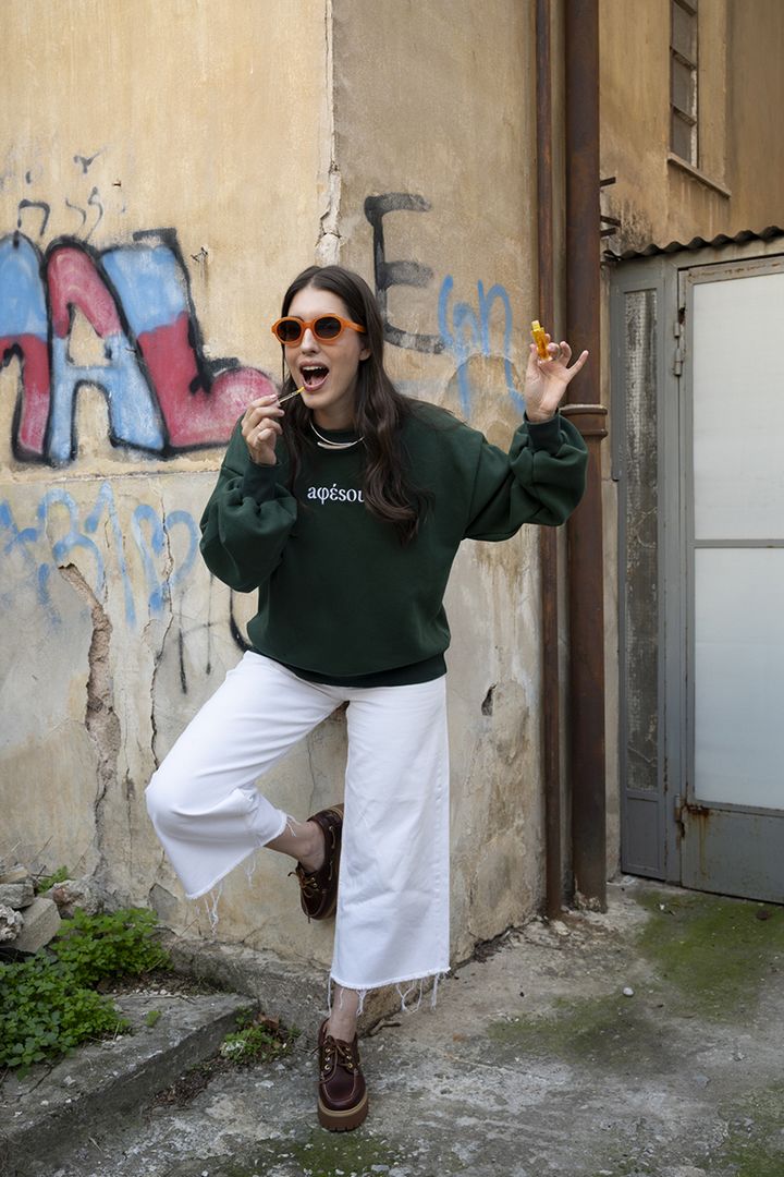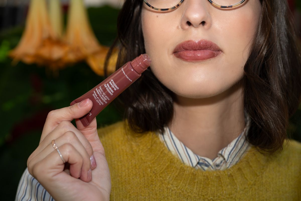 Oversized φουτεράκι από MUSA Collection, cropped τζιν και cozy ατμόσφαιρα χειμωνιάτικης πόλης, συνδυάζονται άψογα με το iconic Honey Infused Lip Oil από Gisou. Ένα look με ”smart casual” χαρακτήρα που μπορεί να σε βγάλει ασπροπρόσωπη όλη μέρα.