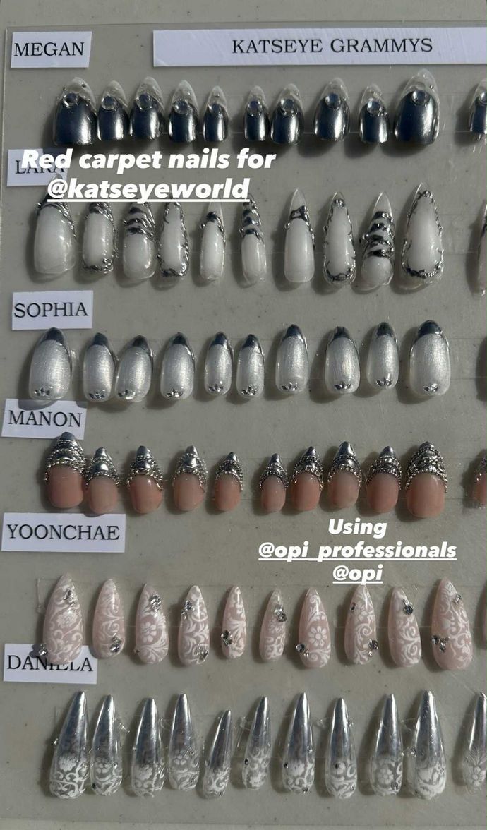 Αντλώντας έμπνευση από τα χρώματα, τις υφές και την αισθητική των εμφανίσεών τους, η celebrity nail artist Naomi Yasuda σχεδίασε 2 διαφορετικά nail sets για κάθε μέλος των Katseye για τη μεγάλη βραδιά των Grammys 2026. Πιο συγκεκριμένα, το πρώτο set προοριζόταν για την red carpet εμφάνισή τους στο κόκκινο χαλί κατά την άφιξη, ενώ, το δεύτερο για το performance τους πάνω στη σκηνή.