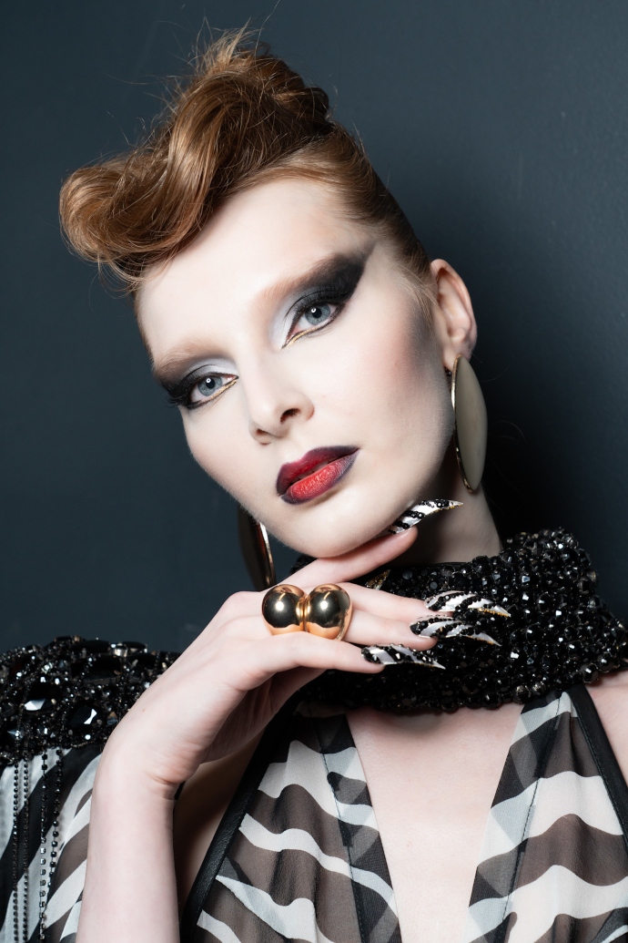 Σε ένα edgy winged eyelook στη συλλογή του brand The Blonds