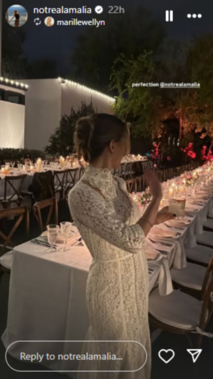 Η ευχάριστη είδηση του γάμου τους, είχε γίνει γνωστή μέσα από δημοσιεύσεις που έκανε η Αμαλία Κωστοπούλου στον προσωπικό της λογαριασμό στο Instagram. Η κόρη της Τζένης Μπαλατσινού και του Πέτρου Κωστόπουλου είχε ανεβάσει 2 stories, όπου στο ένα πόζαρε με νυφικό βέλο και σημείωνε στη λεζάντα «Its Mrs Medwell to you (Κυρία Medwell για εσάς)». Στο άλλο, το οποίο ήταν βίντεο από την τελετή, φιλούσε τον αγαπημένο της.