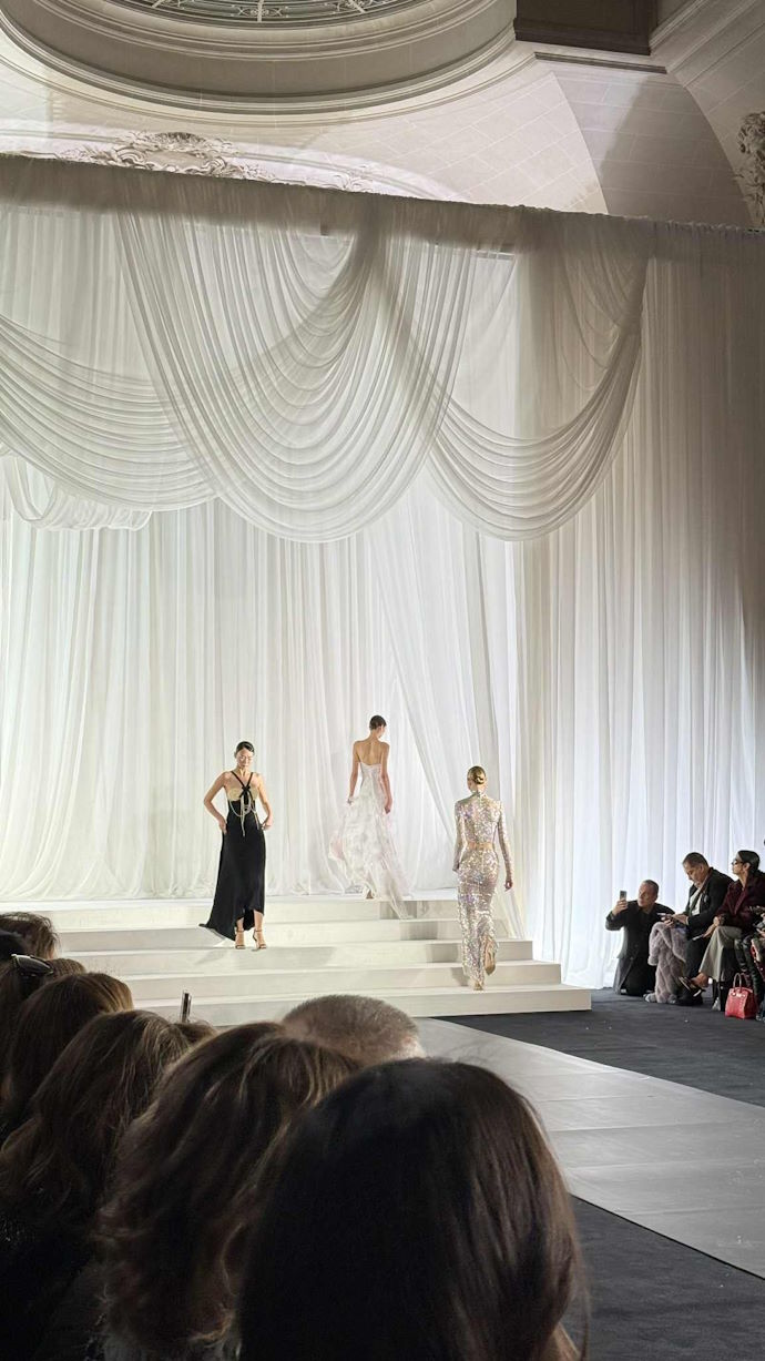 Δημοσιογράφοι, μαζί με διάσημους προσκεκλημένους μεταξύ των οποίων η Αλεξάνδρα Νίκα, η πρέσβης των ΗΠΑ στην Ελλάδα Kimberly Guilfoyle και η Carla Bruni, έδωσαν το «παρών» στην επίδειξη show της Ελληνίδας σχεδιάστριας, Celia Kritharioti η οποία παρουσίασε τη συλλογή της για τη σεζόν Spring– Summer 2026 στη γαλλική πρωτεύουσα και εντυπωσίασε. Το θέμα ήταν το Old Hollywood, καθώς η κινηματογραφική λάμψη βρίσκεται στην καρδιά της συλλογής. Η πολυτέλεια του Old Hollywood αποδόθηκε μέσα από δημιουργίες που απέπνεαν χάρη και λάμψη.
