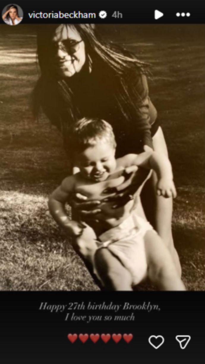 «27 σήμερα. Χρόνια πολλά Bust. Σε αγαπάμε» έγραψε στη μια φωτογραφία ο David Beckham αποκαλώντας τον με το παρατσούκλι του. Στη συνέχεια, φωτογραφία ανέβασε και η Victoria Beckham η οποία έγραψε «Χρόνια πολλά Brooklyn, σε αγαπάμε τόσο πολύ».