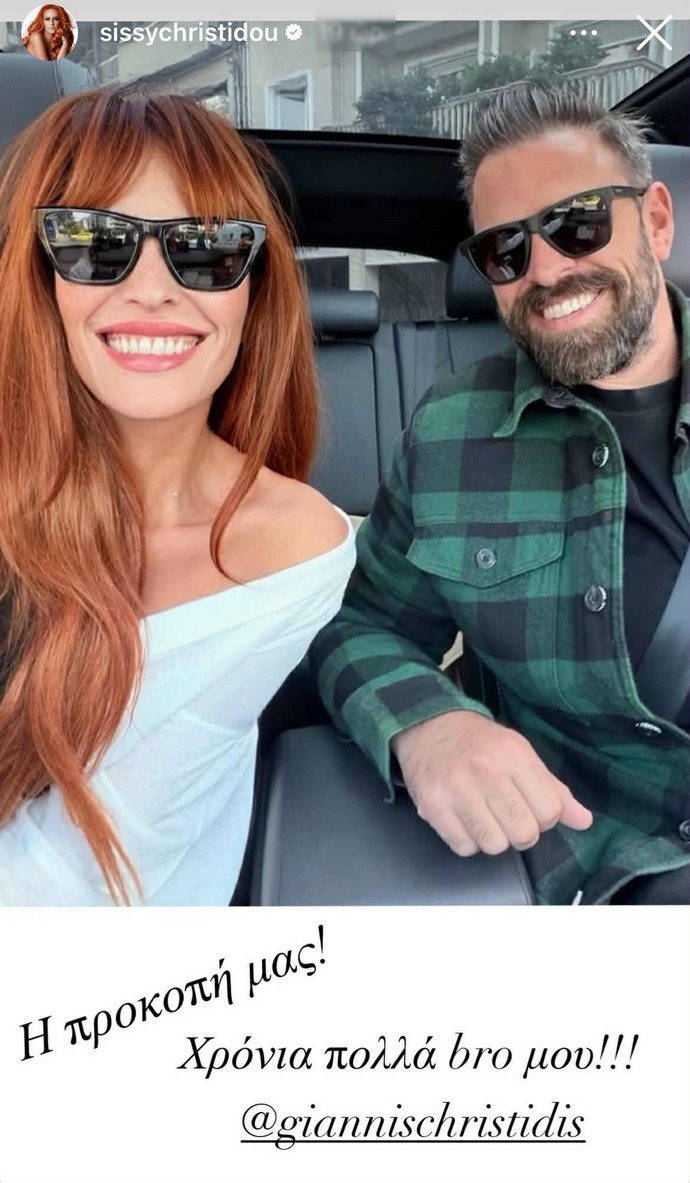 Η παρουσιάστρια μιλά πάντα με λόγια αγάπης για τον Γιάννη Χρηστίδη και με αφορμή την γιορτή του, τού έστειλε ένα πολύ ιδιαίτερο μήνυμα. Η Σίσσυ Χρηστίδου δημοσίευσε μια κοινή τους φωτογραφία και ανέφερε χαρακτηριστικά «Χρόνια πολλά bro μου». Και πρόσθεσε με χιούμορ…«Η προκοπή μας».