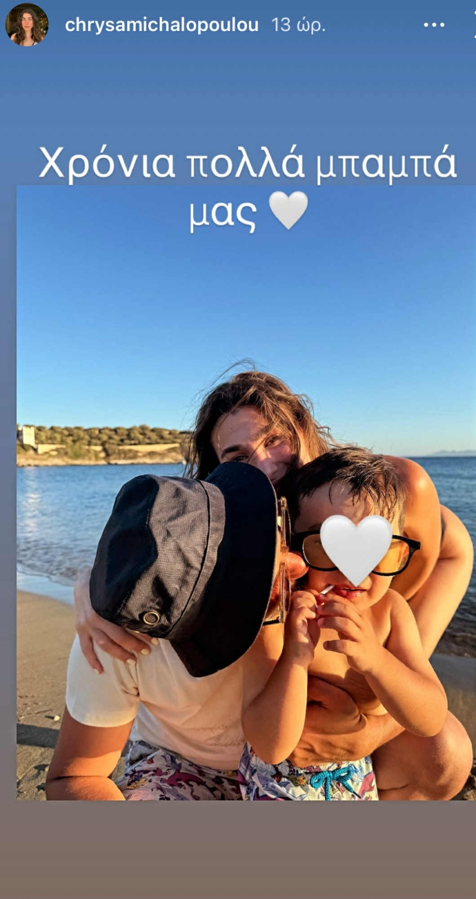Η Χρύσα Μιχαλοπούλου με αφορμή τα γενέθλια του Λεωνίδα Κουτσόπουλου, Δευτέρα 10 Νοεμβρίου, δημοσίευσε σε story στο Instagram μια σπάνια καλοκαιρινή τους φωτογραφία. Στην λήψη τους βλέπουμε αγκαλιά με τον γιο τους σε μια παραλία, ενώ στη φωτογραφία η ηθοποιός σημείωσε: «Χρόνια πολλά μπαμπά μας».