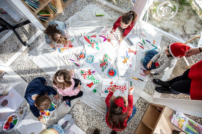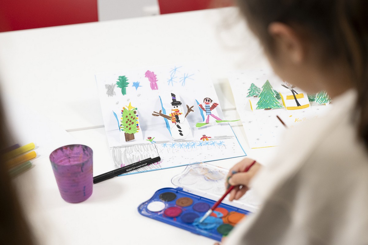 Ξεχωριστή θέση έχει το Kids Corner, που υποδέχεται καθημερινά παιδιά από 3 ετών με εργαστήρια συνεχόμενης ροής. Στη δράση «Ώρα για χριστουγεννοστόλισμα» τα παιδιά φτιάχνουν τα δικά τους στολίδια από πηλό, στο «Φως των Χριστουγέννων» διακοσμούν φαναράκια, ενώ στο εργαστήριο «Τα δώρα είναι jazz» μετατρέπουν μελωδίες σε εικαστικές εκπλήξεις.