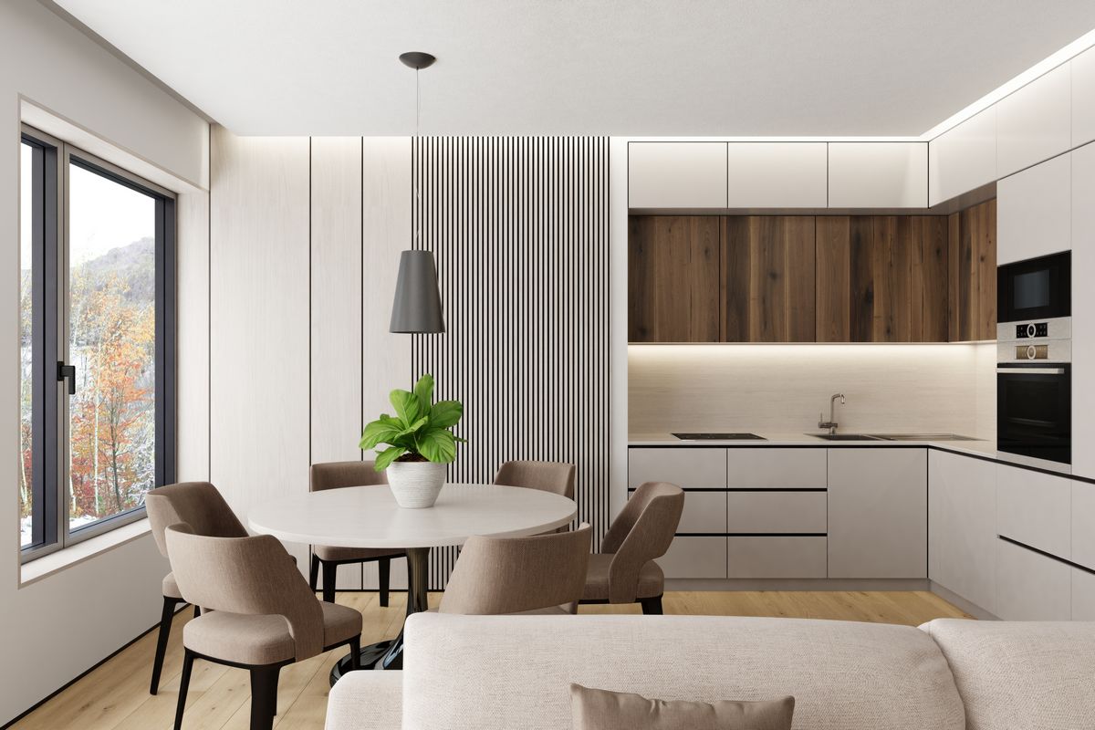 Οι περιορισμοί μεγέθους είναι απλώς μια πρόκληση που πρέπει να αντιμετωπίσεις και όχι εμπόδιο. Μπορείς να περιορίσεις τα έπιπλα στο ελάχιστο και να αποθηκεύεις τα σκεύη σερβιρίσματος στην κουζίνα ή να χρησιμοποιήσεις έξυπνες λύσεις αποθήκευσης όπως ράφια. Τα σωστά χρώματα βαφής μπορούν επίσης να βοηθήσουν να ξεχωρίσει η μικρή τραπεζαρία. Επίσης, φώτισε τον χώρο ώστε να φαίνεται μεγαλύτερος ή μπορείς να επιλέξεις πιο σκούρες αποχρώσεις σε περίπτωση που θέλεις μια πιο cozy ατμόσφαιρα.
