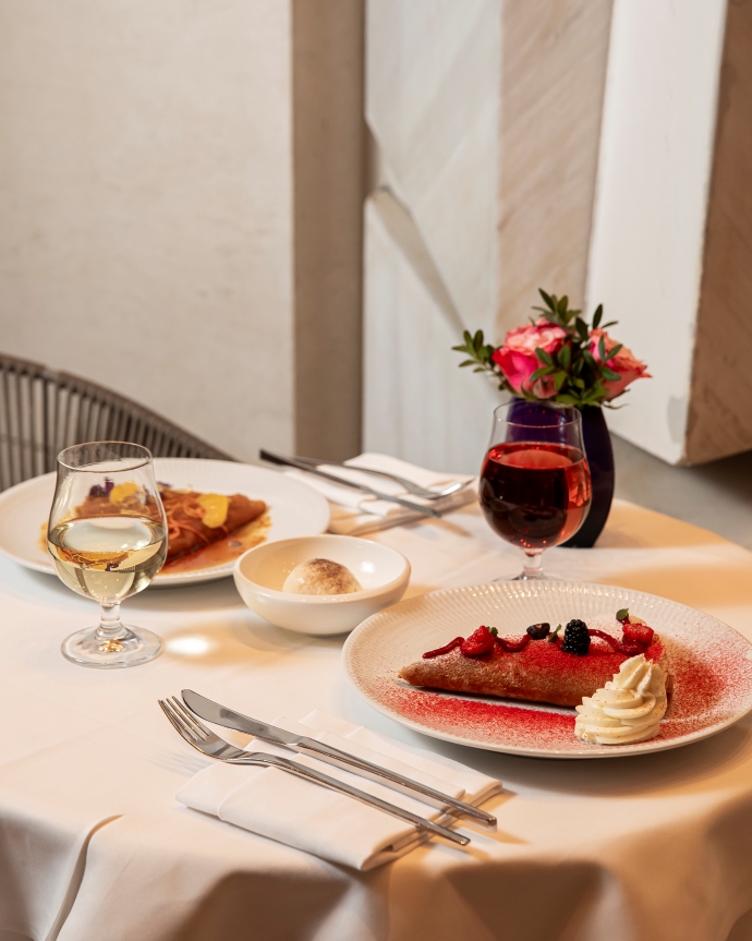 Οι γλυκές κρέπες μετατρέπουν το Galerie Café σε γαλλική pâtisserie. Η Black Forest συνδυάζει bitter σοκολάτα και amarena cherries, ενώ η Crêpe Suzette Classique φλαμπάρεται με σάλτσα πορτοκαλιού και Grand Marnier, συνοδεία παγωτού βανίλια.