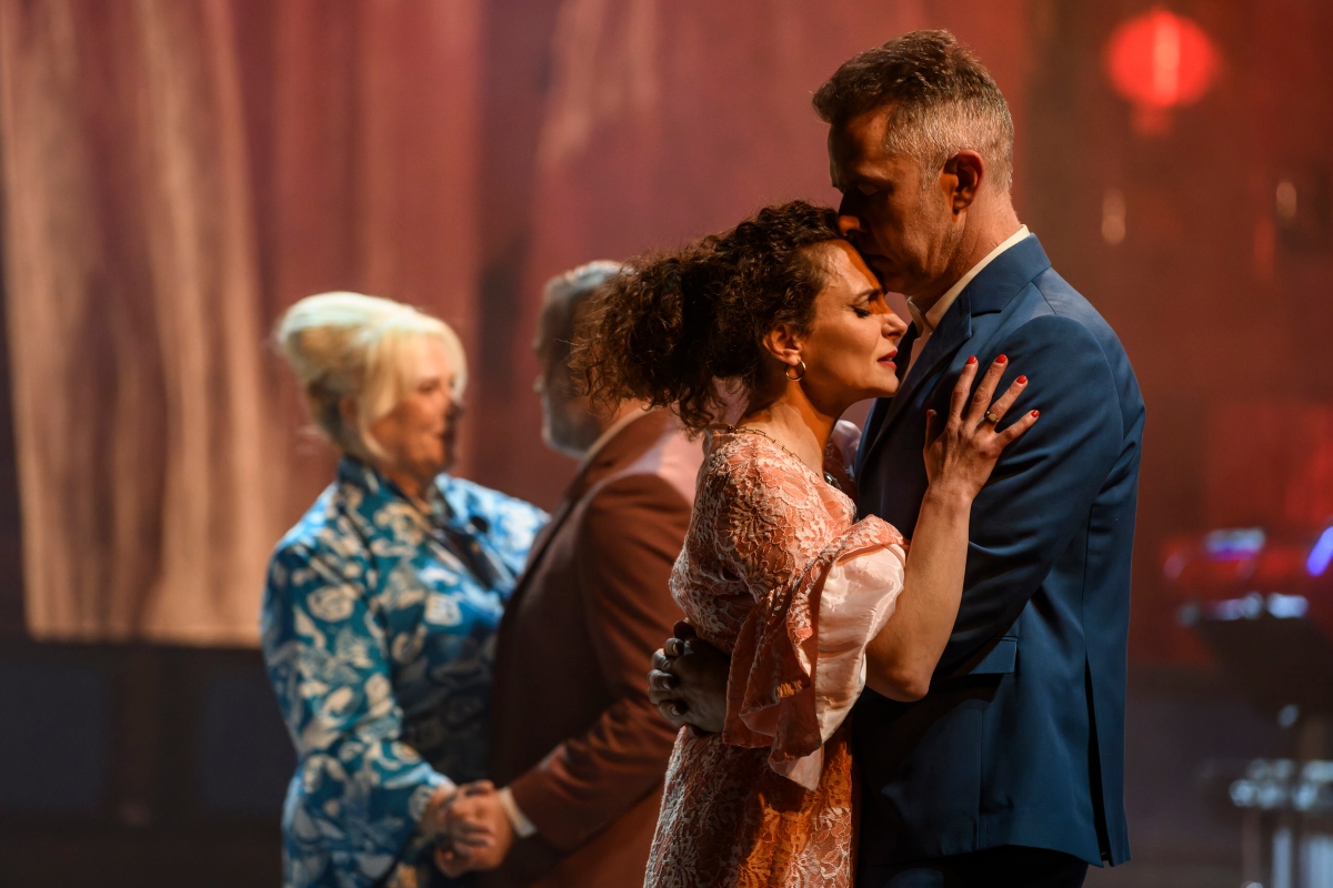 Σε ένα σκηνικό που θα σε αφήσει με το στόμα ανοιχτό (χειροκροτάμε όρθιοι τον Κωνσταντίνο Σκουρλέτη) και με τη συμβολή της 4μελούς ορχήστρας και των ατμοσφαιρικών φωτισμών (Ελίζα Αλεξανδροπούλου), οι πρωταγωνιστές του σήμερα συνυπάρχουν στη σκηνή με τους «μύθους» του χθες. Όλα είναι μαζί εκεί, το παρελθόν και το παρόν, ενώνονται από μία αέναη κίνηση που διαπερνά το έργο (Αμαλία Μπένετ).