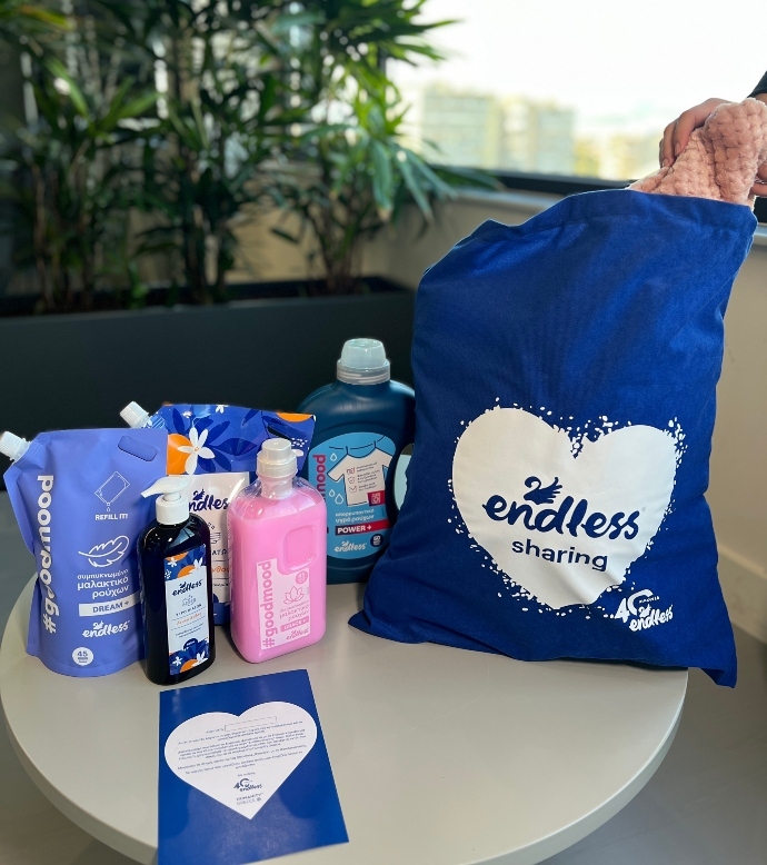 Κάθε συμμετέχων λαμβάνει το Endless Sharing Kit, έναν ειδικό σάκο γεμάτο προϊόντα Endless, όπως μαλακτικό και απορρυπαντικό ρούχων. Ο στόχος είναι απλός αλλά βαθιά ουσιαστικός: να δώσουν νέα ζωή σε ρούχα που έχουν ολοκληρώσει τον κύκλο τους. Τα ρούχα πλένονται και φροντίζονται με τα προϊόντα Endless και στη συνέχεια αποστέλλονται στη Humanity Greece, στηρίζοντας ανθρώπους που πραγματικά το χρειάζονται.