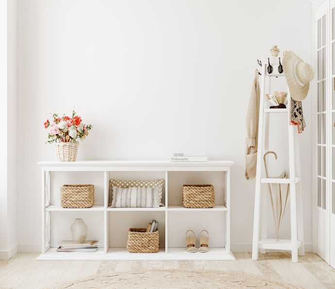 Το καλύτερο που μπορείς να κάνεις για να αποφύγεις κάθε είδους ακαταστασία είναι να δημιουργήσεις «οπτικές ζώνες». Τι σημαίνει αυτό; Χρησιμοποίησε καλάθια αποθήκευσης ώστε να εντάξεις αντικείμενα που χρησιμοποιείς σε καθημερινή βάση χωρίς να κάνεις άνω κάτω την είσοδο του σπιτιού σου. Και αν εκεί αφήνεις τα παλτό ή μπουφάν σου, χρησιμοποίησε έναν καλόγερο ώστε να μην δείχνουν τα πράγματα ακατάστατα όταν θα μπαίνεις μέσα στο σπίτι σου.