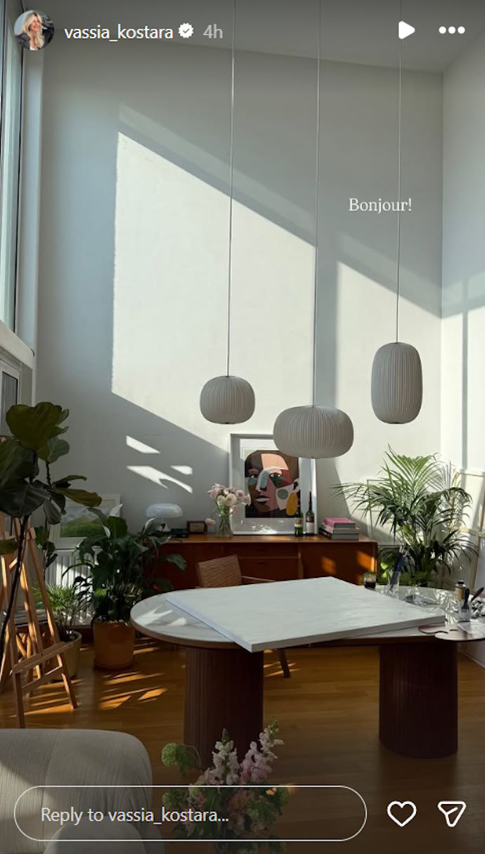 Έχοντας σαν βάση αυτό στο σπίτι της που είναι διώροφο, με ψηλό ταβάνι και μεγάλα παράθυρα, έχει καταφέρει να κάνει την πιο καλαίσθητη, minimal διακόσμηση. Η Βάσια Κωσταρά συχνά θα δημοσιεύσει στον προσωπικό της λογαριασμό στο Instagram, φωτογραφίες και βίντεο από κάθε δωμάτιο του σπιτιού της αλλά αυτήν τη φορά, μας έδειξε την τραπεζαρία της η οποία θυμίζει επίγειο παράδεισο αλλά θα μπορούσαμε να λέγαμε ότι σε «ταξιδεύει» σε έναν τροπικό προορισμό.