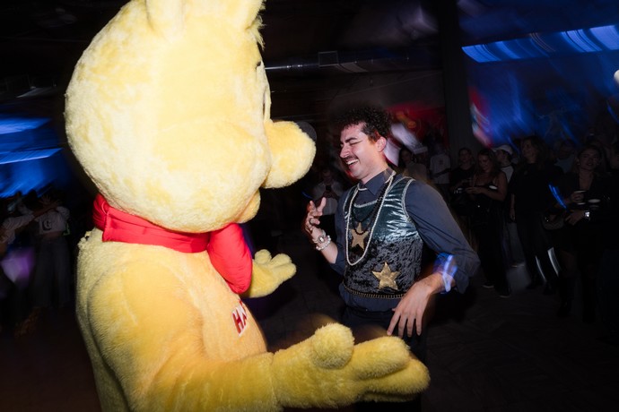 Κι όταν το κέφι απογειώθηκε στο 00s Party του LadyLike και του OneMan, η μασκότ των Haribo παρέδωσε μαθήματα χορού. Ήταν ασταμάτητος και σπουδαίος παρτενέρ. Κι όταν μας έβλεπε να κουραζόμαστε, μας έδειχνε τον δρόμο για το candy bar. Με λίγα ζελεδάκια παίρναμε δυνάμεις και ξανά προς τη δόξα- και το dancefloor- τραβούσαμε.