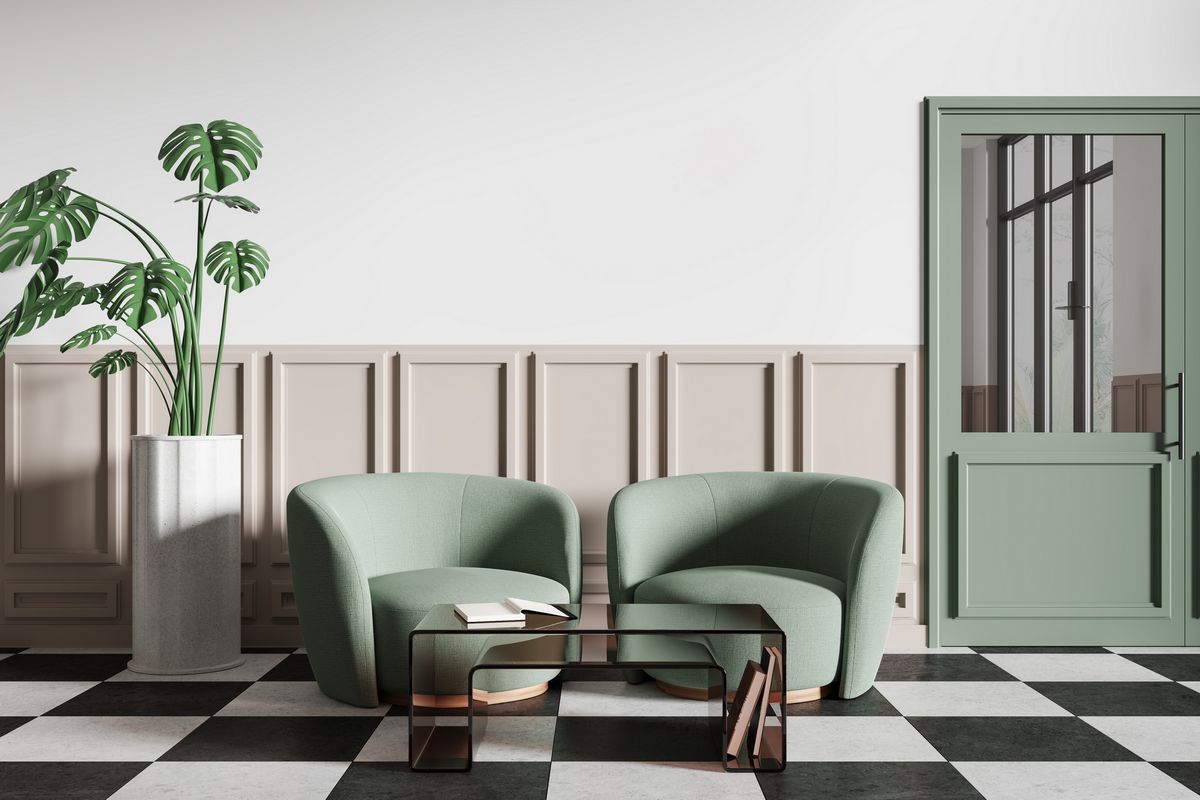 Υπάρχουν μερικά παραδοσιακά στοιχεία σχεδιασμού που είναι διαχρονικά. Παρόλο που ήταν πολύ αγαπητά σε ρετρό χώρους, πλέον τα έντονα ασπρόμαυρα πλακάκια δαπέδου με σκακιέρα σύντομα θα ξεχαστούν, καθώς το ασπρόμαυρο μπορεί να είναι οπτικά λάθος. Έχει γίνει μια μεγάλη στροφή στα πιο απαλά, πιο λεπτεπίλεπτα καρό. Κρεμώδες λευκό, υπόλευκο με γκρι, ακόμη και καφέ σε συνδυασμό με ένα ζεστό ουδέτερο.