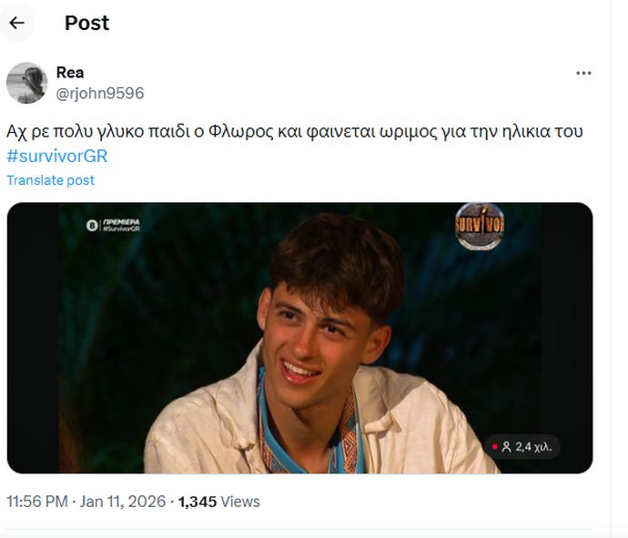 Είδαμε δυνατούς αγώνες αλλά και εντάσεις ανάμεσα στους παίκτες με τους περισσότερους να νιώθουν πως μπορούν να καταφέρουν να κερδίσουν το φετινό Survivor. Κατά τη διάρκεια προβολής του reality επιβίωσης, οι χρήστες του Twitter/X έδειξαν ποιον παίκτη συμπαθούν περισσότερο (μέχρι στιγμής) και αυτός είναι ο Σταύρος Φλώρος.
