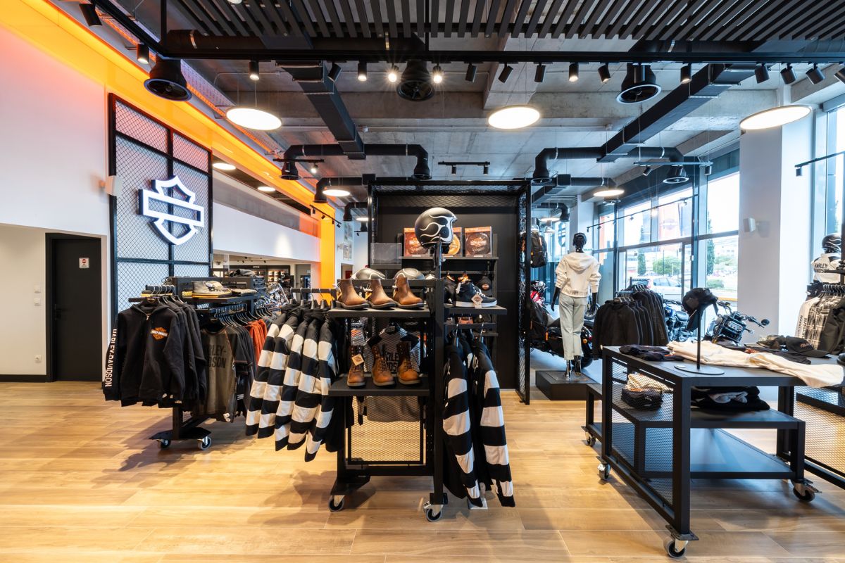 Σε έναν χώρο 1.200 τ.μ., το κατάστημα φιλοξενεί το πλήρες σύμπαν της Harley-Davidson: τις πιο πρόσφατες μοτοσυκλέτες του brand, αυθεντικά είδη ένδυσης και αξεσουάρ, καθώς και ολοκληρωμένες υπηρεσίες Συνεργείου.