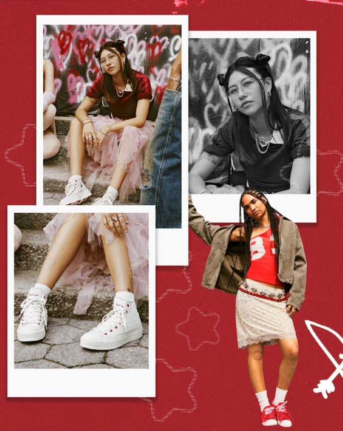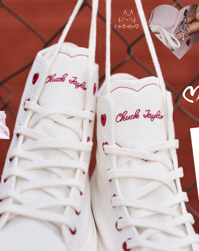 Για την Converse, το Chuck είναι ένας καμβάς αυτοέκφρασης, ένα σύμβολο προσωπικού στυλ που εξελίσσεται μαζί με εκείνους που το φορούν. Στη συλλογή Chucks in Love, το συναίσθημα μεταφράζεται σε design: joyful και απόλυτα wearable.