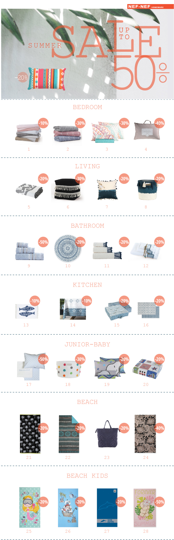 Με το καλοκαίρι να είναι στα φόρτε του η NEF-NEF Homeware μας βάζει σε ακόμη πιο θερινή διάθεση με εκπτώσεις έως 50%!