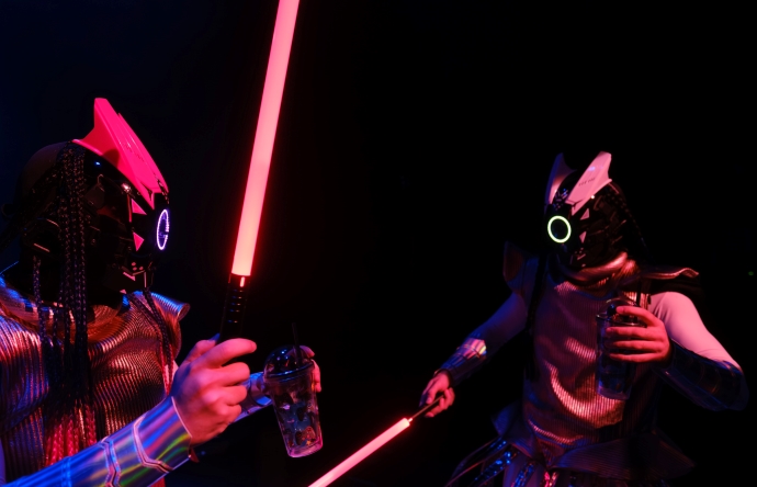 Καθοριστικό ρόλο στη δημιουργία αυτού του μαγικού σκηνικού κόσμου έχουν τα εντυπωσιακά σκηνικά της Ελένης Νανοπούλου και τα θεαματικά κοστούμια της Κλαιρ Μπρέισγουελ, που συνδυάζουν στοιχεία εποχής με φουτουριστικές πινελιές. Την εμπειρία συμπληρώνουν οι υψηλής ποιότητας προβολές του Πάτροκλου Σκαφίδα και οι ατμοσφαιρικοί φωτισμοί της Σοφίας Αλεξιάδου. Όπως σε όλες τις παραστάσεις του Θεάτρου Πόρτα, η μουσική έχει πρωταγωνιστικό ρόλο: ο Κορνήλιος Σελαμσής υπογράφει την πρωτότυπη μουσική και τα τραγούδια, τα οποία ερμηνεύονται ζωντανά επί σκηνής από τον οκταμελή θίασο, προσθέτοντας ρυθμό, συγκίνηση και αμεσότητα στη θεατρική εμπειρία.