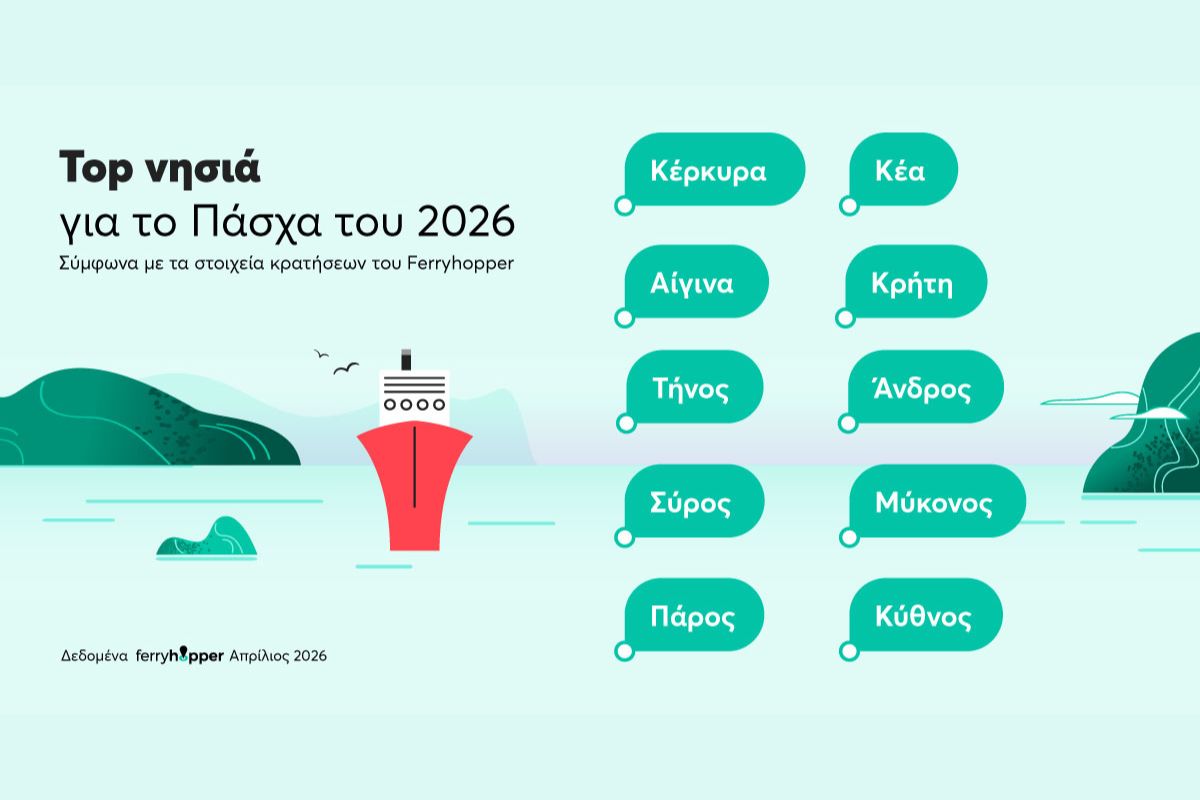 Τα στοιχεία του Ferryhopper δείχνουν ότι η πρώτη δεκάδα παρέμεινε σταθερή, ωστόσο υπήρξε μια αλλαγή στη δυναμική των προορισμών που έφερε ανακατατάξεις. Η Κέρκυρα αναδείχθηκε κορυφαία επιλογή για το Πάσχα του 2026 και ακολούθησε η Αίγινα στη δεύτερη θέση, ενώ την τριάδα συμπλήρωσε για άλλη μια χρονιά η Τήνος.