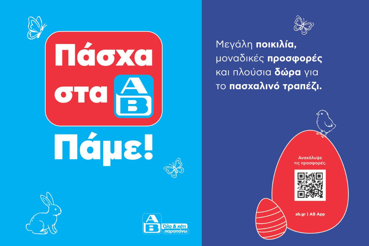 Και φέτος το Πάσχα πάμε στα ΑΒ! Η ΑΒ Βασιλόπουλος επιβεβαιώνει ότι είναι ο προορισμός που συγκεντρώνει όλα όσα χρειάζεται η ελληνική οικογένεια για τις εορταστικές αγορές: πλούσια ποικιλία, σταθερή ποιότητα και μεγάλες προσφορές που ανταποκρίνονται στις ανάγκες της εποχής. Από ελληνικά αμνοερίφια και εκλεκτά κρέατα έως και παραδοσιακά τσουρέκια έχουν την τιμητική τους σε μεγάλη ποικιλία, μοναδικές προσφορές και πλούσια δώρα.