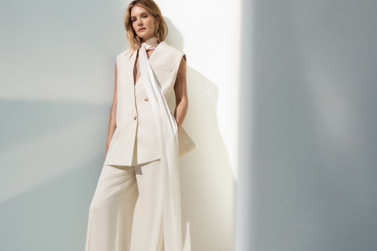 Το tailoring παραμένει ο ακρογωνιαίος λίθος της γκαρνταρόμπας BOSS. Για τους πιο ζεστούς μήνες, τα κοστούμια αποκτούν πιο ανεπιτήδευτο χαρακτήρα μέσα από χαλαρές γραμμές που εξισορροπούν την καθαρότητα και τη δομή τους. Ένα oversized, double-breasted γιλέκο σε κρεμ μείγμα παρθένου μαλλιού αποτελεί μια καλοκαιρινή εναλλακτική στο κλασικό σακάκι. Μέρος μιας από τις βασικές εμφανίσεις της σεζόν, ένα αμάνικο κόψιμο συνδυάζεται με παντελόνι σε φαρδιά γραμμή με πιέτες, από ελαφρύ, ρευστό τουΐλ, για ένα ραφιναρισμένο, tailored look που δεν θυσιάζει την άνεση.