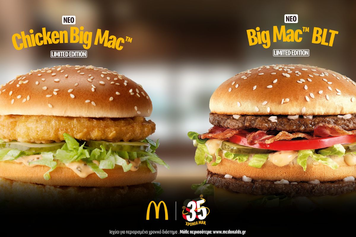 Παράλληλα, γιορτάζοντας την αγάπη του κόσμου, ένα από τα αγαπημένα και πιο δημοφιλή burgers, το Big Mac™, ενισχύεται με δύο νέες επιλογές με ακόμα πιο πλούσια γεύση και για περιορισμένο χρονικό διάστημα. Το Big Mac™ BLT έρχεται με δύο μπιφτέκια βοδινού κρέατος, τυρί, κρεμμυδάκι, πίκλες, μαρούλι iceberg, ζουμερή τομάτα, bacon και σπέσιαλ σάλτσα Big Mac™, σε αφράτο σουσαμένιο ψωμί. Ενώ το Chicken Big Mac™ φέρνει το iconic Big Mac™ experience με δύο παναρισμένα κομμάτια κοτόπουλου.