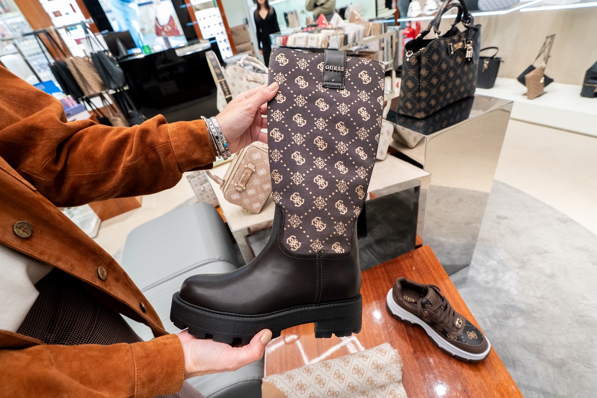 Στο κατάστημα του brand στο 2ο επίπεδο του The Mall Athens εκτός από αγαπημένες τσάντες, πορτοφόλια, ζώνες και φουλάρια, σε chic χρώματα, εντοπίσαμε αυτό το ζευγάρι chunky boots με το χαρακτηριστικό logo της Guess, που θα λατρέψει (και θα βολευτεί) κάθε Boomer και Millennial καθώς συνδυάζεται με πολλά χειμερινά outfits.