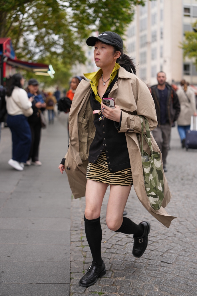 Zebra print φούστα με ζακέτα, πουκάμισο και καμπαρντίνα