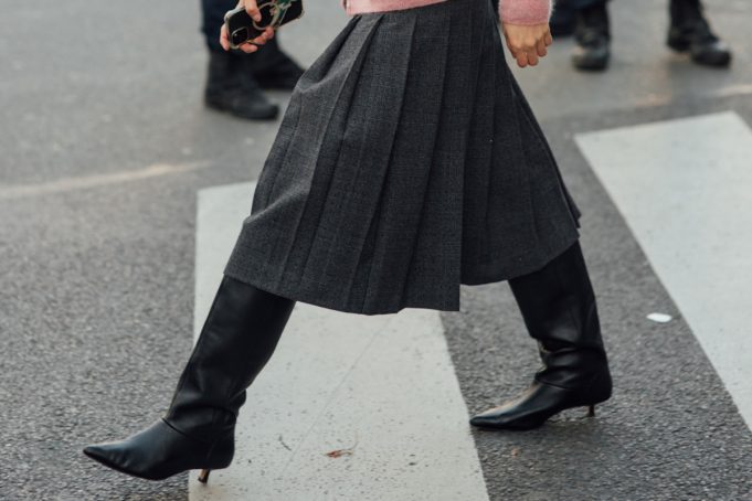 Η λεοπάρ φούστα με μαύρο καλσόν και μπότες με τακούνι
