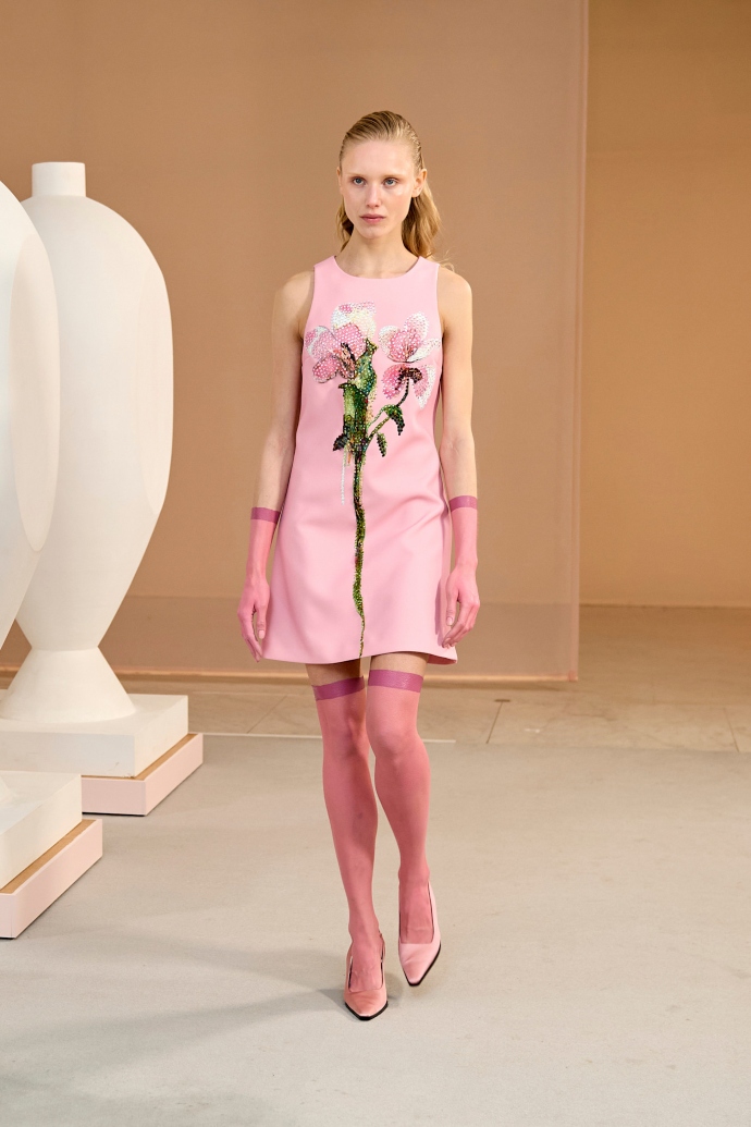 To φλοράλ μοτίβο στις πασαρέλες αποτυπώθηκε με πολλούς και διαφορετικούς τρόπους. Αναδύθηκε σαν αναρριχώμενο φυτό στα φορέματα του οίκου Antonio Maras, θύμισε πίνακα ζωγραφικής στις συλλογές της Simone Rocha και της Caroline Hú, αναμείχθηκε με πλεκτά υφάσματα στη Fall 2025 συλλογή της Blumarine, στόλισε διαφάνειες και τούλι στις συλλογές των οίκων Louis Vuitton και Proenza Schouler, άλλες φορές στην μικροσκοπική μορφή του (στη συλλογή του Givenchy) και άλλοτε στην μαξιμαλιστική εκδοχή του όπως στον οίκο Erdem.
