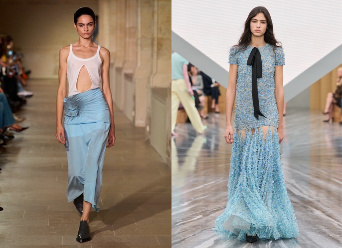 Αυτό επιβεβαιώνουν και οι Spring 2026 πασαρέλες. Σε συλλογές όπως αυτές της Simone Rocha, Valentino, Victoria Beckham, Dior κ.ά., βλέπουμε το versatility του cool blue. Μέσα από εντυπωσιακά μακριά φορέματα, σατέν «χαλαρές» φούστες αλλά και «αυστηρά» κοστούμια, το χρώμα αυτό επιβεβαιώνει ότι μπορεί να προσφέρει ένα complex αποτέλεσμα χωρίς να γίνεται βαρετό.