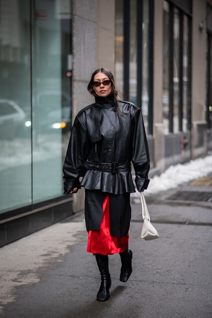 Το δερμάτινο jacket και όλες οι εκδοχές του (bomber, σακάκι, με κουμπιά, με ζώνη στη μέση από γυαλιστερό ή ματ υλικό) θα δημιουργήσει μια bold και edgy αισθητική σε κάθε σύνολο. Θα αναβαθμίσει ένα πολύ απλό σύνολο που στηρίζεται στα basics, αλλά την ίδια στιγμή θα ταιριάξει άψογα με άλλα statement κομμάτια και ιδιαίτερες υφές.