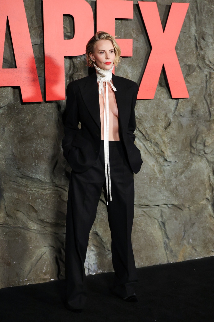 Την Τετάρτη 22 Απριλίου η Charlize Theron παρευρέθηκε στη Νέα Υόρκη με αφορμή την πρεμιέρα της ταινίας του Netflix με τίτλο Apex. Για τη συγκεκριμένη περίσταση, η 50χρονη ηθοποιός εμφανίστηκε με ένα μαύρο καλοραμμένο κοστούμι από τη Fall 2026 Μenswear συλλογή του Jonathan Anderson για τον οίκο Dior.