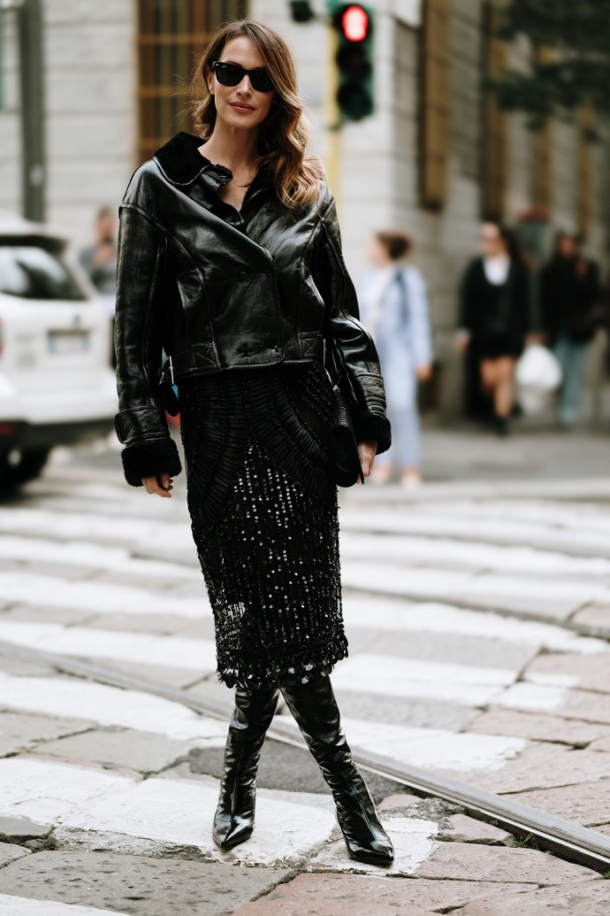 Αν αυτή η φούστα σου φαίνεται «πολύ» ή δεν είσαι σίγουρη με τι να τη συνδυάσεις, βασίσου στη μονοχρωμία και το μαύρο χρώμα για ένα σίγουρο αποτέλεσμα.