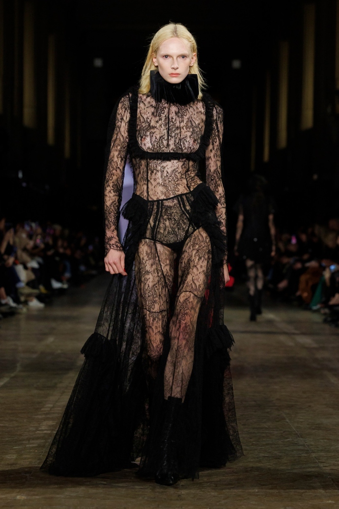 Οι Fall 2025 συλλογές βγάζουν την άλλοτε σκονισμένη στο συρτάρι δαντέλα, δίνοντάς της μια σύγχρονη αισθητική, άπειρα σέξι και δυναμική που απέχει πολύ από την «σοβαρή» και κάποτε ξεπερασμένη πλευρά της αν μπορούμε να το ορίσουμε κάπως έτσι. Η δαντέλα στις πασαρέλες παραμένει σκοτεινή και moody αλλά ταυτόχρονα είναι πιο ανάλαφρη και ντελικάτη δίνοντας το έναυσμα για επιστροφή στον ρομαντισμό. Εξερευνά το γυναικείο σώμα και το αναδεικνύει μέσα από ανάλαφρα διάφανα φορέματα, βικτωριανά πουκάμισα, slip φούστες, bodysuits και άλλα εσώρουχα. Δημιουργεί αντιθέσεις με πιο βαριά υφάσματα (όπως πανωφόρια), ξεφεύγει από την κλασική χρωματική παλέτα του μαύρου και του λευκού, αποκτά edgy λεπτομέρειες όπως έντονους ώμους.