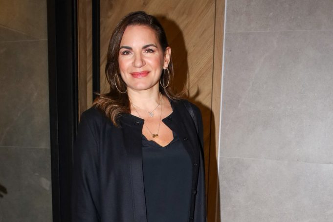 Η Κάτια Ζυγούλη με βελούδινο φόρεμα ταιριάζει το σύνολό της με αυτό του Σάκη Ρουβά