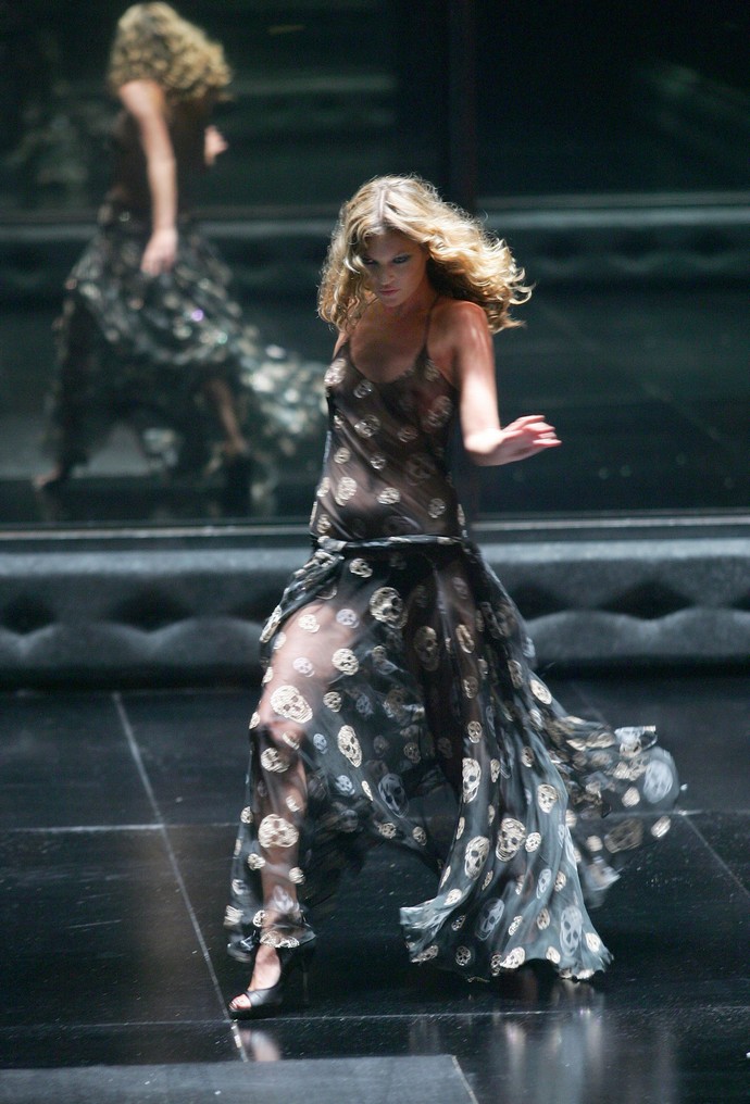 Πριν από αυτό, η Kate Moss είχε εμφανιστεί στη σκηνή, φορώντας το original σχέδιο του skull dress που φόρεσε η Margot Robbie, χορεύοντας και δημιουργώντας μια αξέχαστη runway στιγμή. Το αντισυμβατικό πνεύμα του σχεδιαστή μπορεί να μην συνεχίζεται με τον ίδιο τρόπο στον οίκο από τον McGirr, αλλά συνεχίζει να εμπνέει τη δουλειά πολλών σχεδιαστών.