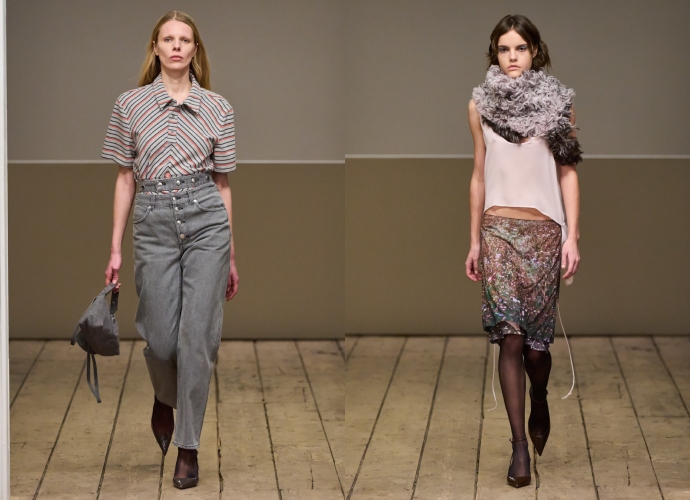 Οversized polo μπλούζες, slip φορέματα και γούνινα jackets, έδωσαν μια late 90s, early 00s διάθεση στη συλλογή χωρίς αυτή να δείχνει ξεπερασμένη. Υπήρχε μια ενδιαφέρουσα προοπτική στα ρούχα, λες και βλέπαμε την γκαρνταρόμπα ενός/μιας teenager που έχει επαναστατική διάθεση ως προς το ντύσιμό τους/της, αλλά με ένα elevated τρόπο ώστε να προσαρμόζεται στο στιλ πολλών ανθρώπων, ανεξαρτήτως της σεξουαλικής τους ταυτότητας.