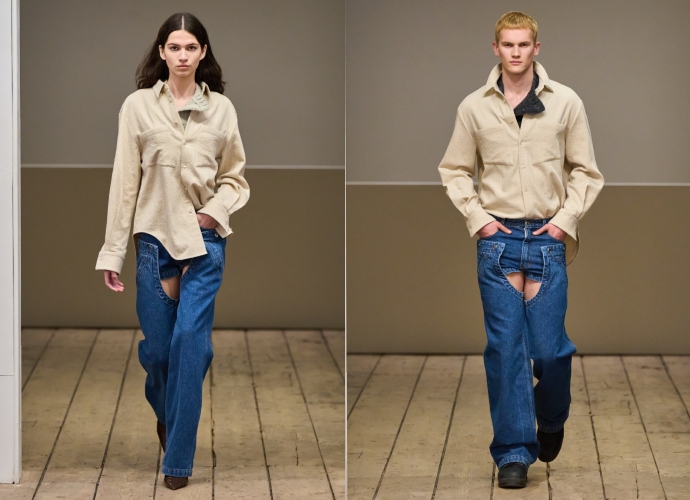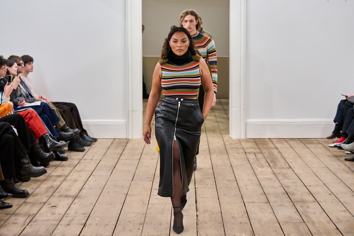 Αυτό παρουσιάστηκε μέσα από πολλά genderless κομμάτια της συλλογής, όπως τα denim chaps που είδαμε σε γυναίκες και άνδρες, αλλά και οι μάλλινες ζακέτες και οι δερμάτινες mini φούστες που στα ανδρικά looks συνοδεύτηκαν από δερμάτινα παντελόνια. Από τα highlights της συλλογής, ήταν η παρουσία της Paloma Elsesser στην πασαρέλα (η οποία έχει συνεργαστεί ξανά με τους σχεδιαστές στο παρελθόν). Το μοντέλο «ανοίγοντας» το show, μάς υπενθύμισε ότι υπάρχει ακόμα (λίγος) χώρος για εκπροσώπηση όλων των σωματότυπων στη μόδα.