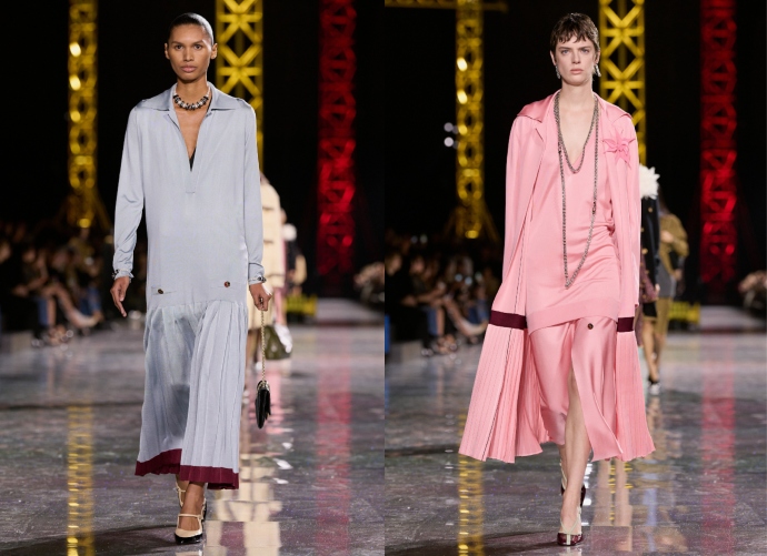 Ο Blazy αντλεί έμπνευση από τις δεκαετίες που σημάδεψαν την ιστορία του οίκου. Σιλουέτες που εμπνέονται από τα 20s, τα 30s, τα 50s και τα 60s εμφανίζονται μέσα από πολυεπίπεδα σχέδια που αποπνέουν μια χαλαρότητα, παρά το complexity τους, ενώνοντας το παρελθόν με το παρόν.