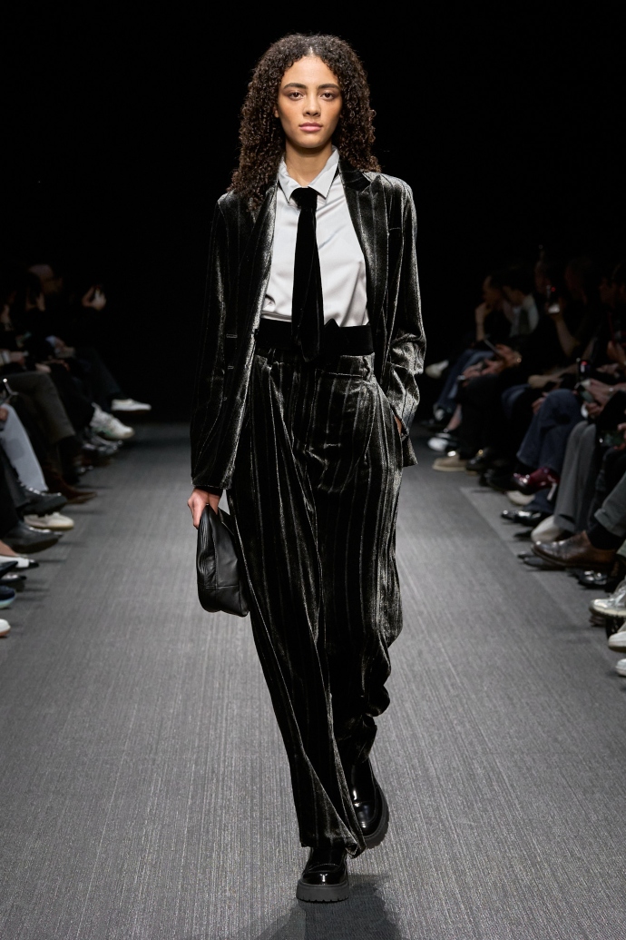 Οι Fall 2025 συλλογές υπενθύμισαν, λοιπόν, τη διαχρονική του αξία αλλά παράλληλα το επαναπροσδιόρισαν μέσω των γραμμών και των διαφορετικών χρωμάτων. Το all time classic μαύρο παρέμεινε πάνω σε ρευστά βελούδινα παντελόνια και σακάκια αλλά τα έντονα χρώματα όπως το ζεστό πορτοκαλί, το παιχνιδιάρικο μωβ και το μυστηριώδες πράσινο έκαναν την ανατροπή. Η συλλογή της Nina Ricci τίμησε το βελούδινο των 70s, οι συλλογές του Giorgio Armani έδειξαν την πληθωρική του υπόσταση ενώ ο οίκος Gucci την φανταστική sexy πλευρά του.