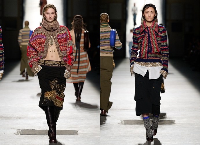 Τα εντυπωσιακά υφάσματα δε, με τις ινδικές και ασιατικές αναφορές και τα εκπληκτικά κεντήματα, «συνάντησαν» άψογα τα streetwear στοιχεία και το υψηλό design. Στοιχεία όπως ζακάρ υφάσματα, τα κολιέ-φούντες και εκπληκτικά chandelier earrings, ενίσχυσαν ακόμα περισσότερο την αφήγηση γύρω από την προσωπική ταυτότητα.