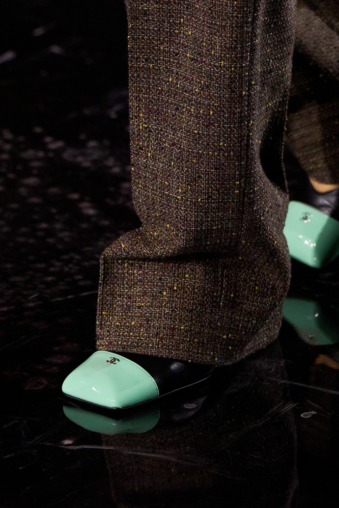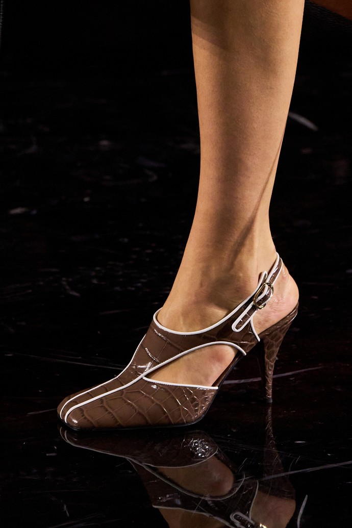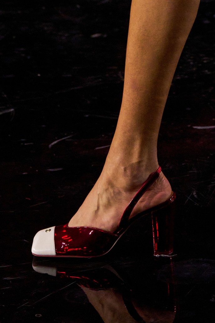 Άλλο ένα αξεσουάρ ταυτισμένο με τον οίκο Chanel που οι πελάτισσες του brand -παλιές και καινούργιες- θα απολαύσουν ιδιαίτερα. Τα εμβληματικά two-toned παπούτσια του γαλλικού label, αναγεννήθηκαν μέσα από τα square toe shoes της Spring 2026 συλλογής. Τετράγωνες μύτες σε slingbacks αλλά και mules εντυπωσιακές γόβες με τη χαρακτηριστική μαύρη γραμμή/περίγραμμα του οίκου, όπως και εκπληκτικά Mary Janes σε κροκό δέρμα, θα γίνουν η νέα εμμονή των fashionistas.